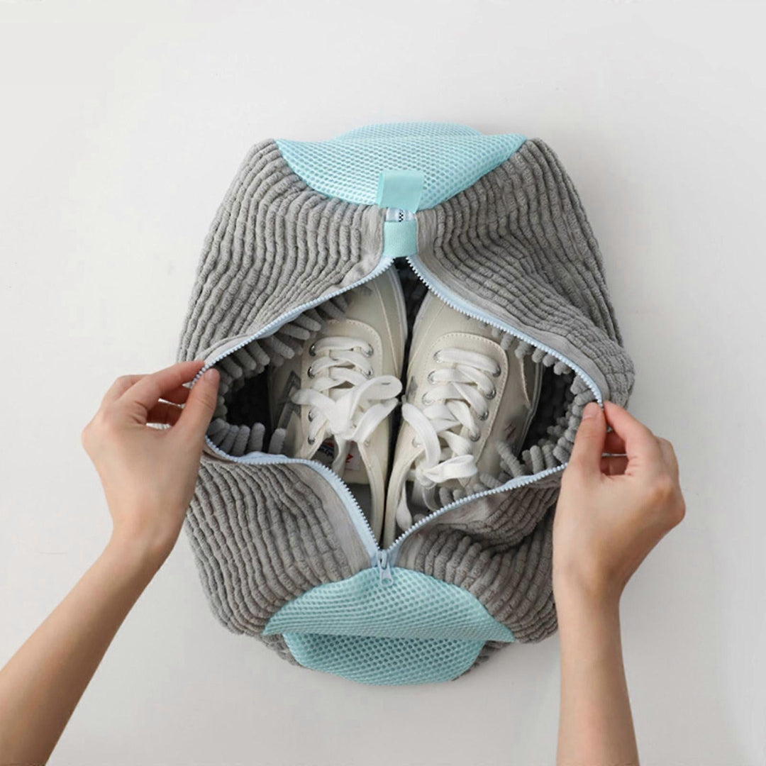 Scopri la borsa per lavare le scarpe che trasforma la lavatrice nella tua alleata più fedele. Grazie al suo design intelligente, le tue sneakers usciranno pulite e protette, senza sbattere nel cestello come tamburi impazziti.